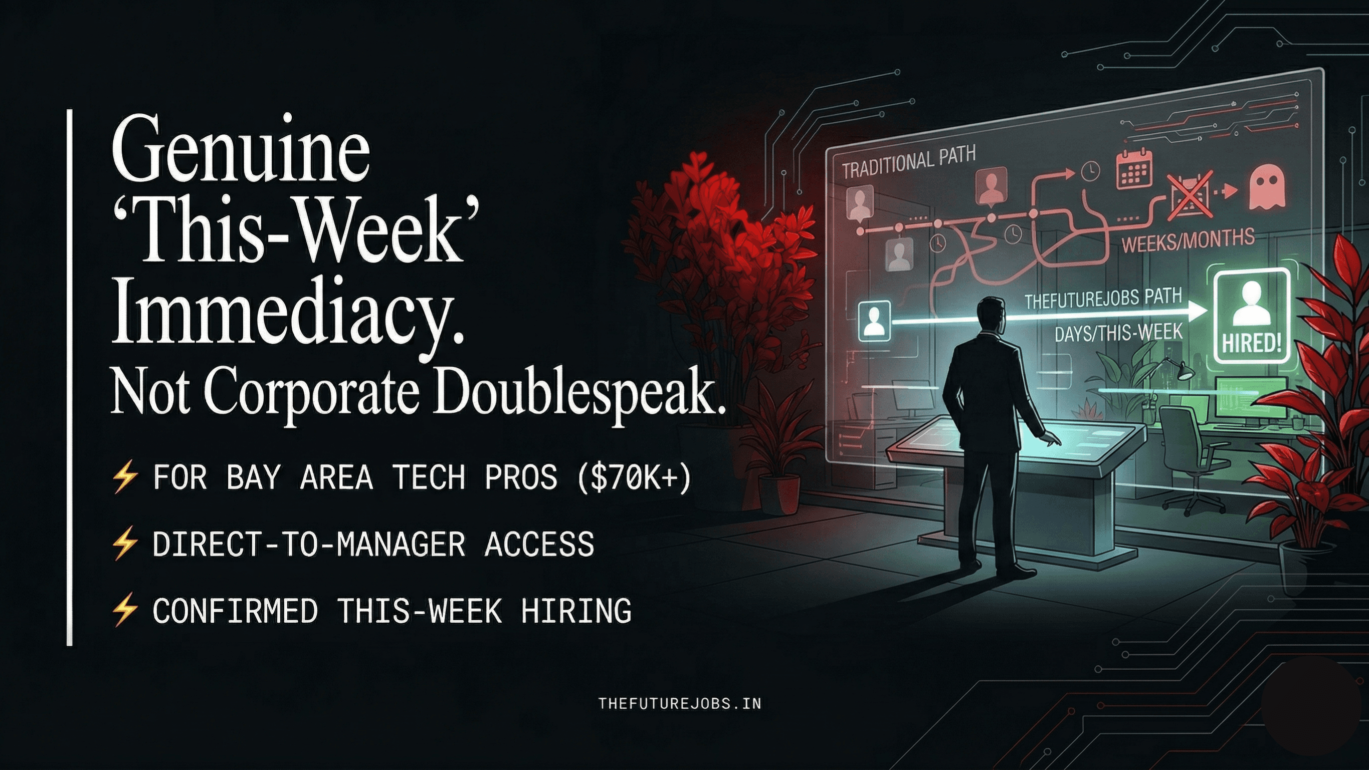 You typed "jobs near me hiring immediately" into that search bar. Five words that tell an entire story. You're not casually browsing. You're not "exploring options." You're ready — ready to move, ready to leave whatever situation drove you to search with that specific urgency in your fingertips. And if you're a tech professional in the San Francisco Bay Area — someone whose skills command $70,000 or more in annual compensation — that search represents something even more specific: absolute frustration with the traditional hiring timeline. The six-round interview marathons. The three-week ghosting periods. The "we're moving forward with other candidates" emails arriving two months after your application. The recruiters who promise urgency and deliver bureaucratic purgatory. You need jobs hiring immediately. Not "immediately" in corporate doublespeak — actual, genuine, this-week immediacy. Let's talk about why TheFutureJobs is the only platform delivering on that promise for elite Bay Area tech talent.